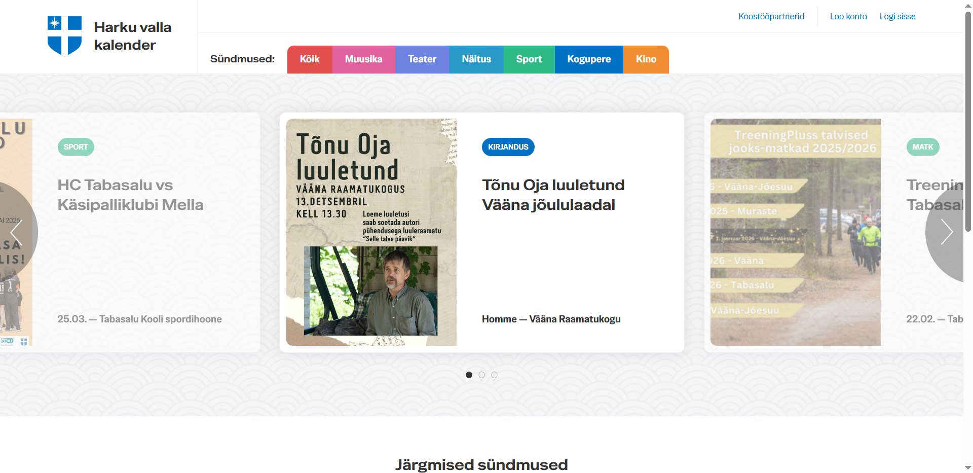Kalendrisse sisu lisamiseks on vajalik konto, mille saavad kõik korraldajad ja teenusepakkujad luua siin.