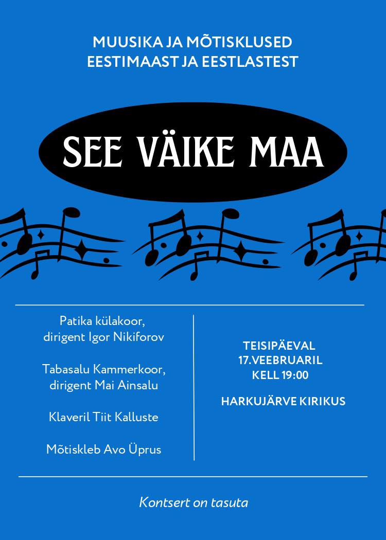 Kontsert on tasutaEesti Iseseisvuspäeva eel kutsume kõiki kuulama ja kaasa mõtlema kontserdile “SEE VÄIKE MAA”
