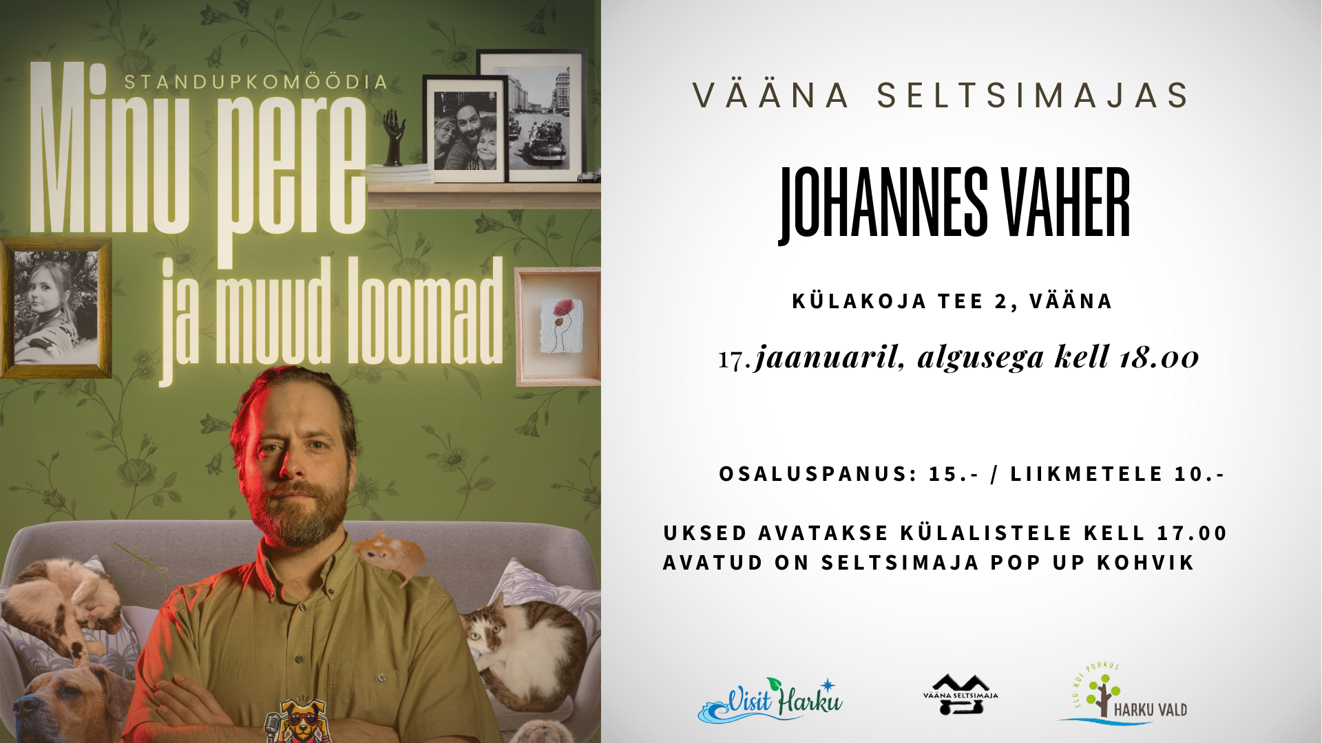 Pärast seitset aastat standupi tegemist toob Johannes Vaher lavale oma esimese tunni, fookuses pere ja lemmikloomad, keda ta oma korterisse on mahutanud lausa kuus.