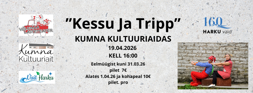 7€/10€“Kessu on tavaline pikemat kasvu lühike plikatirts, kes kunagi midagi meeles ei pea, aga kõike väga hästi mäletab. Tripp on punase valgevöödilise tuttmütsi ning võimatult keerdus ninaga sussides kloun. Tripp on Kessu ustav sõber ja igapäevane mängukaaslane.