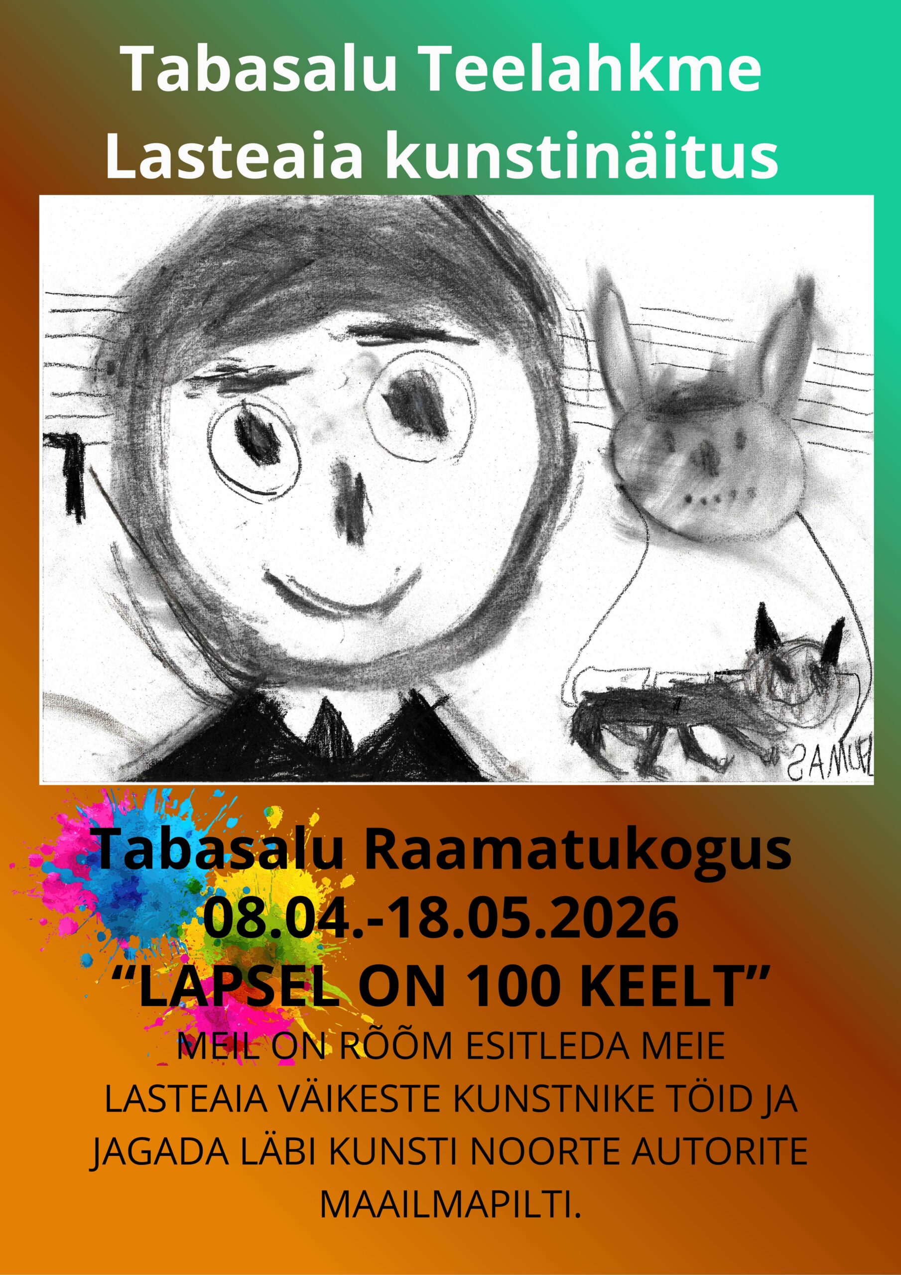 Me usume, et laps ei väljenda end ainult sõnade kaudu. Ta räägib läbi kunsti, liikumise, mängu, heli, kujutluse ja vaikuse. See näitus kutsub märkama ja väärtustama neid mitmekesiseid „keeli“, mille kaudu laps oma maailma loob ja jagab.